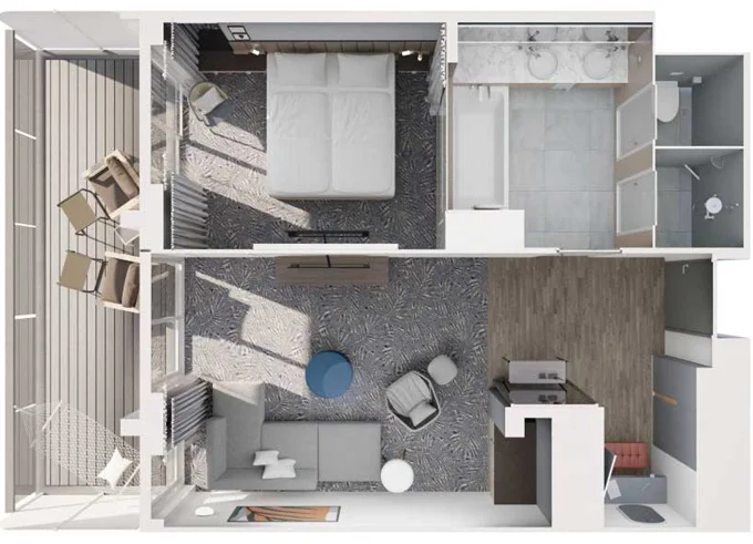 | JKCO - Junior Suite s balkónom C 26 m² + balkón 7 m² so stoličkami a podnožkami. 7. paluba. Max 4 osoby. Výhody Junior Suite. | 6 998 € 3 499 € za osobu | ||